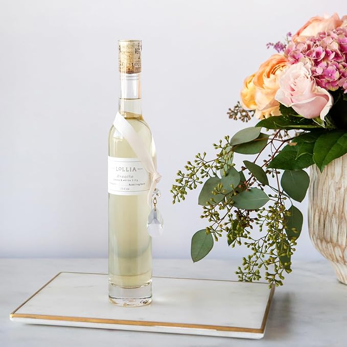 - BEAUTIFUL SCENTED BUBBLE BATH: Fill the tub with rich, romantic bubbles. Lollia’s Breathe Bubble Bath for Adults is a gentle whisper of ruffled Peony and White lily with the sheerest hints of fresh Grapefruit and Orange to create a beautiful bath time retreat.