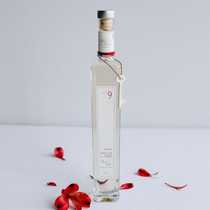 - A STRIKING GLASS BOTTLE: This distinctive glass bottle of bubble bath is sweetly adorned with a symbolic key to the beloved’s heart, accented with delicate red cording, and sealed with a signature Lollia cork. Featured in Oprah’s Favorite Things.