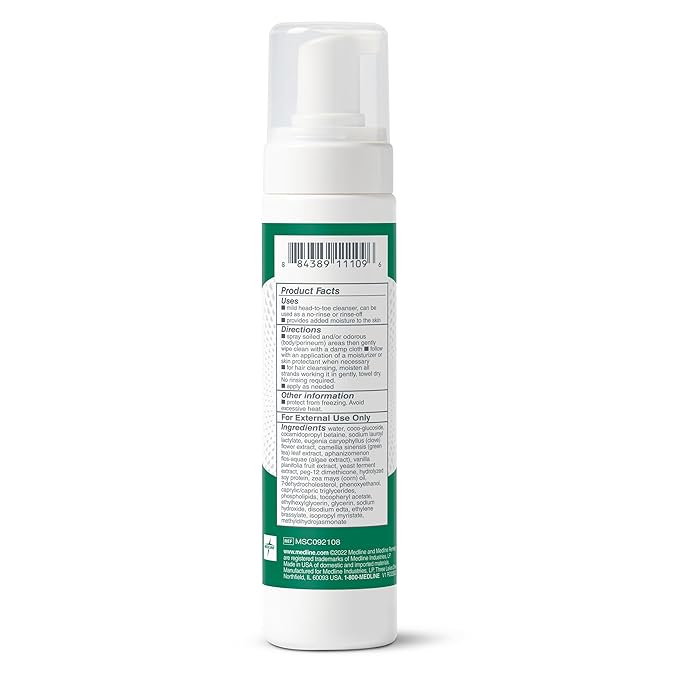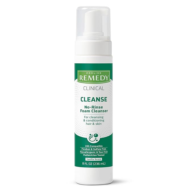 Medline Remedy Clinical No-Rinse Foam Cleanser, Vanilla Scent (8 fl oz), No Rinse Shampoo and Body Cleanser for Sensitive Skin, Hydrating, Paraben and Sulfate Free, For Face, Body, and Hair, All Ages