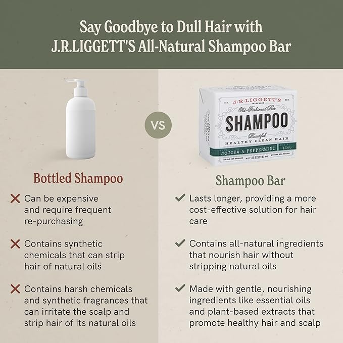 - Clean, Healthy, Beautiful Hair: J.R.LIGGETT’S shampoo bars remove the built-up sebum that can clog and damage hair follicles! Used regularly, it promotes a radiant, healthy shine that’s never greasy. You may find you no longer need conditioner.