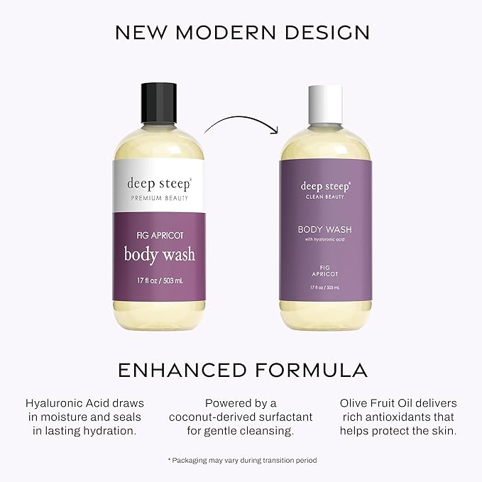 Deep Steep Body Wash, Fig Apricot, 17 oz – Hydrating Shower Gel with Hyaluronic Acid, Shea Butter, Aloe Vera & Argan Oil – Vegan, Clean Beauty, Clean & Refreshed Skin