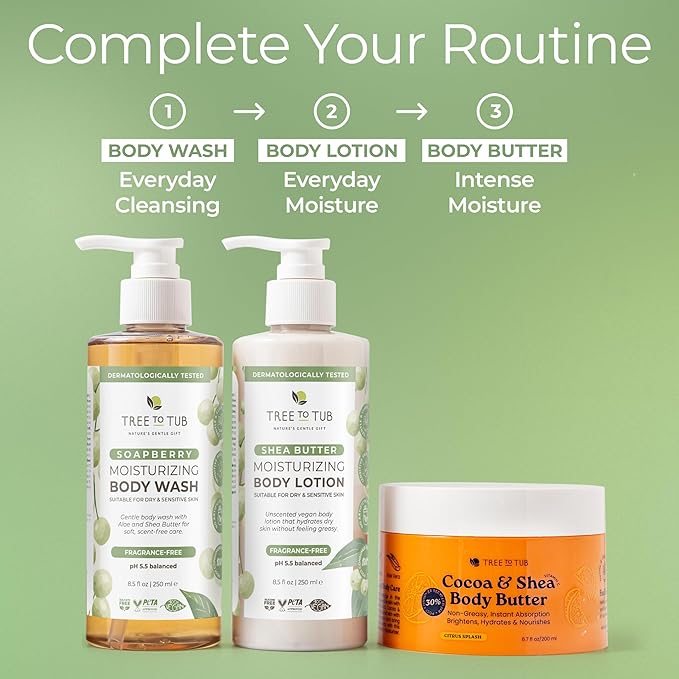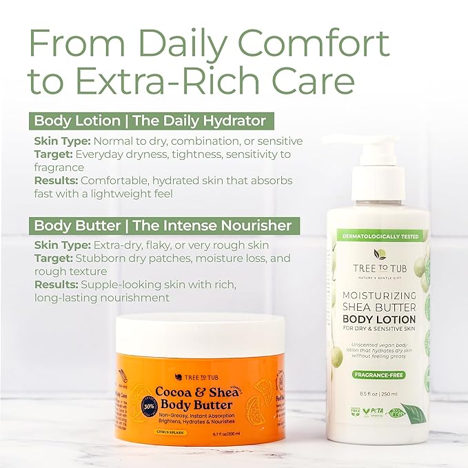 Tree to Tub Unscented Shea Butter Body Lotion for Dry Skin - Fragrance Free Lotion,Vegan Body Moisturizer, Good for Sensitive Skin for both Women & Men