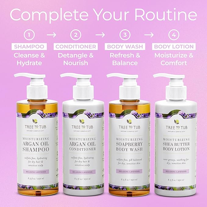 Tree to Tub Lavender Dry Hair Shampoo for Sensitive Scalp - Gentle Hydrating Dry Scalp Shampoo for Women & Men, Moisturizing Sulfate Free Shampoo w/Organic Argan Oil, Chamomile, All Natural Aloe Vera
