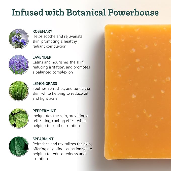- FRESH CLEAN FEEL WITHOUT HARMFUL INGREDIENTS - Olive Oil, Coconut Oil, Sustainable Palm Oil, Goat Milk, & Rosemary, Lavender, Lemongrass, Peppermint and Spearmint Essential Oils.
