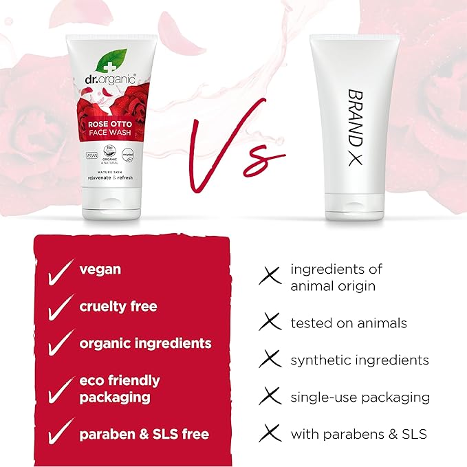 Dr. Organic Rose Otto Face Wash | Cleanses and Rejuvenates Skin, Promotes Radiance, Natural, Certified Organic, Paraben & SLS-Free, 150 mL / 5.1 fl oz