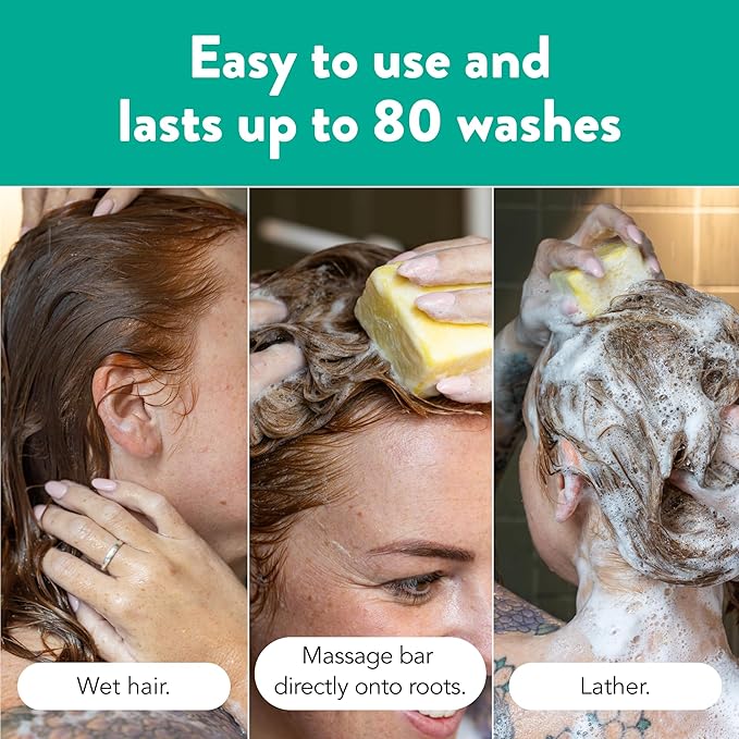 - Save Money & the Planet: Each shampoo bar lasts at least 80 washes, equivalent to three bottles of liquid shampoo. To use, stroke the bar down wet hair – it will lather!