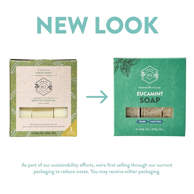 Crate 61 Organics, Handmade in Canada, Plant Based Cold Process Natural Bar Soap For Face And Body, With Premium Essential Oils, For Men And Women 3 Pack (Eucamint)