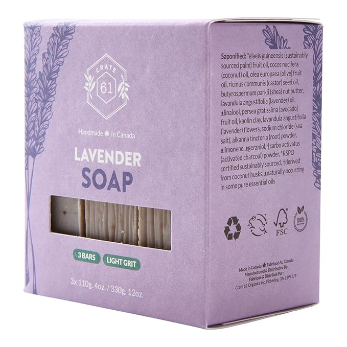 Crate 61, Natural Bar Soap, Vegan, Lavender, Handmade Soap With Premium Essential Oils, Cold Pressed Face And Body Bar For Men And Women (4 oz, 3 Bars) Lavender 3 Pack