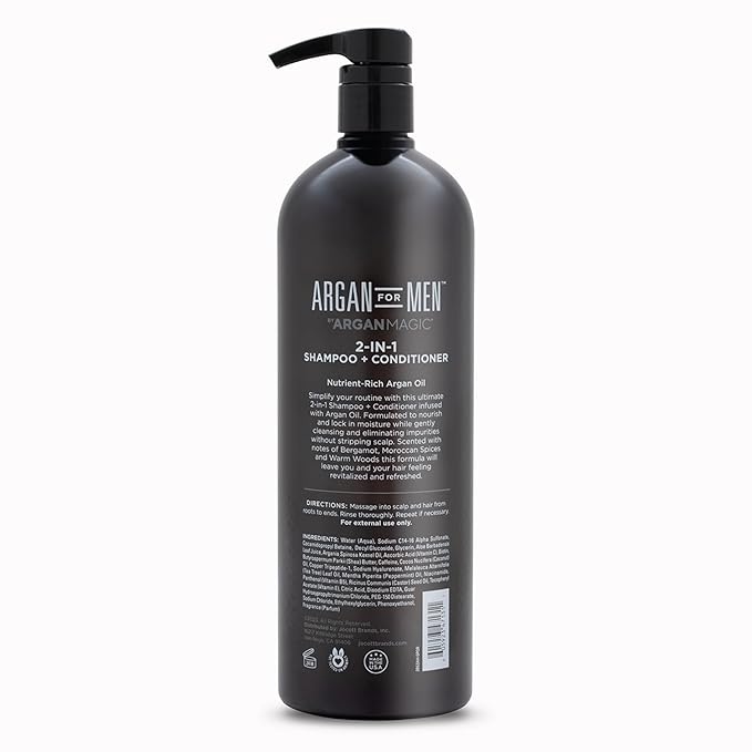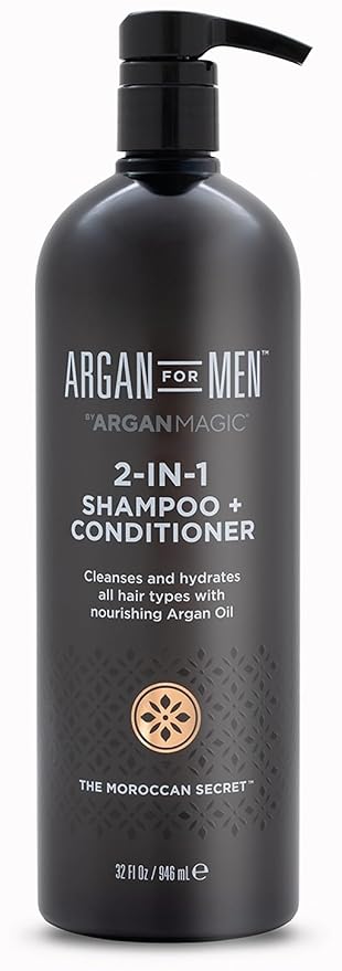 - ARGAN FOR MEN 2-IN-1 SHAMPOO + CONDITIONER (32 fl oz): Designed specifically for men, this product combines the benefits of both shampoo and conditioner to streamline your grooming routine.