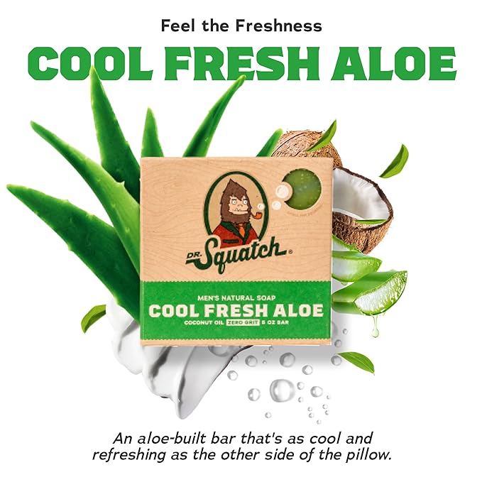 - RAISE THE BAR - Upgrade your shower with our sudstastic soaps featuring Dr. Squatch’s favorite scents: Cool Fresh Aloe, Cedar Citrus, Gold Moss, Pine Tar & Bay Rum (5 oz, 5-Pack)