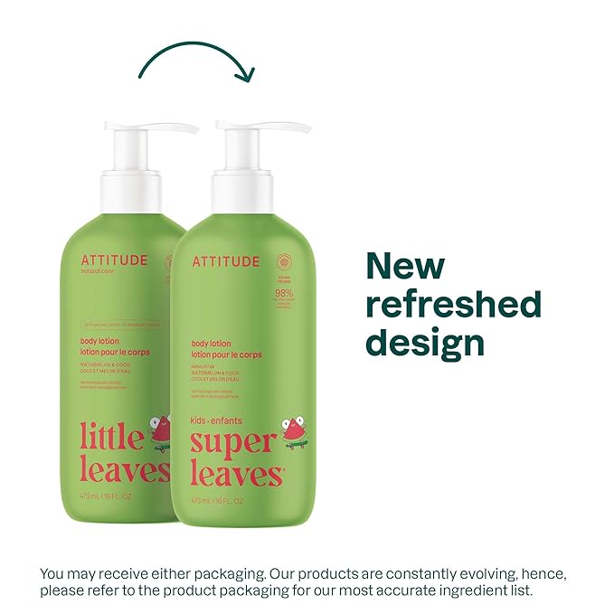 ATTITUDE Body Lotion for Kids, EWG Verifed Moisturizer, Dermatologically Tested, Plant and Mineral Based Cream, Vegan, Watermelon & Coco, 16 Fl Oz