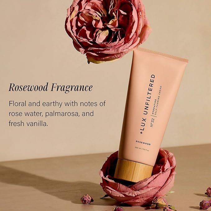 + Lux Unfiltered N°32 Gradual Self Tanner, Hydrating Self Tanning Lotion with Shea Butter & Squalane - Non-Sticky, No Transfer, Natural-Looking Tan - Vegan & Cruelty-Free Sunless Tanner - Rosewood