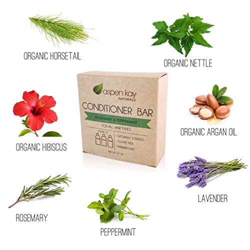 Peppermint & Rosemary Natural Hair Conditioner Bar, Organic, Vegan, Volumizing, Hydrating Argan Oil Conditioner for Curly or Straight Hair, Paraben & Sulfate Free, Made in USA - 2.3 oz.