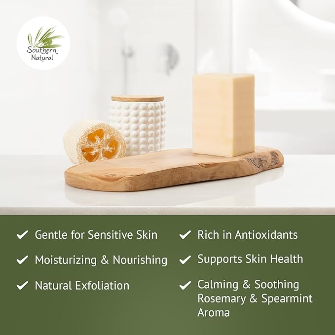 Southern Natural Goat Milk Soap Bar - 3 Pack Rosemary Mint - For Dry Sensitive Skin. Natural, Handmade Soap For Men, Women & Kids. Use On Face & Body