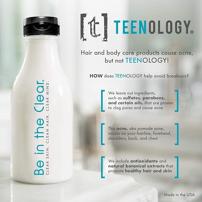 - ✓NO SULFATES, PARABENS, OR PORE CLOGGING OILS: Dermatologists have identified certain ingredients in hair care and skin care treatment products that can clog pores and cause forehead acne (aka pomade acne). On The Doctors TV spot, “Hype or Hope,” TEENOLOGY liquid shampoo was praised by medical professionals because it does not contain acne-causing sulfates, parabens, and certain oils.