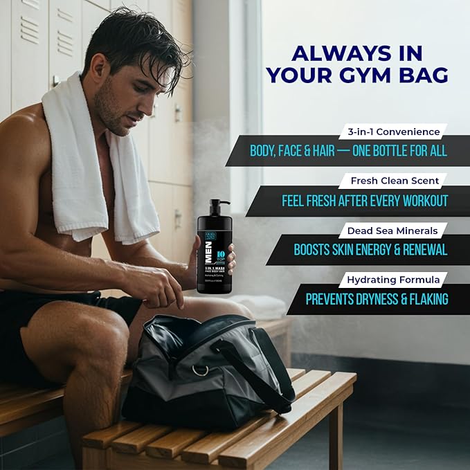 - Pure Dead Sea minerals - as a men's s face and body wash, it gently cleanses without drying the skin, providing essential nutrition. When used as a shampoo for men, it keeps hair moisturized and manageable, making it the perfect choice for the best mens body wash!