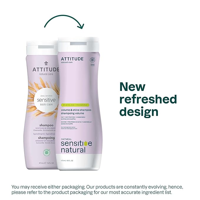 ATTITUDE Hair Shampoo for Sensitive Dry Scalp, EWG Verified, Soothing Oat, For Thin Hair, Naturally Derived Ingredients, Vegan and Plant-Based, Volume and Shine, Chamomile, 16 Fl Oz (Pack of 6)