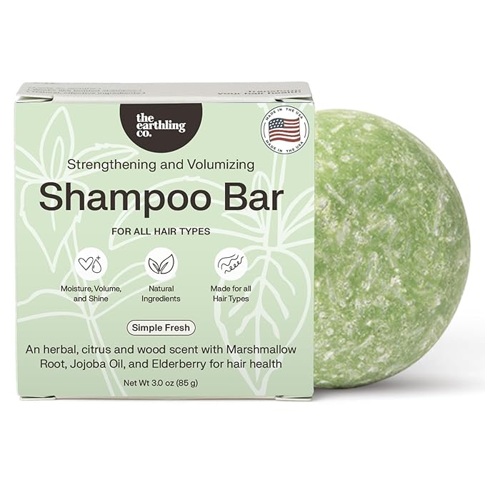 The Earthling Co. Shampoo Bar - Promote Hair Growth, Strengthen & Volumize All Hair Types - Paraben & Sulfate Free formula with Natural, Vegan Ingredients for Dry Hair (Simple Fresh, 3 oz)