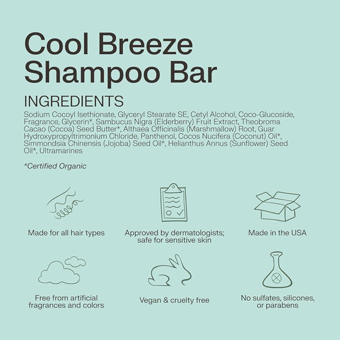 The Earthling Co. Shampoo Bar - Promote Hair Growth, Strengthen & Volumize All Hair Types - Paraben & Sulfate Free formula with Natural, Vegan Ingredients for Dry Hair (Cool Breeze, 3 oz)