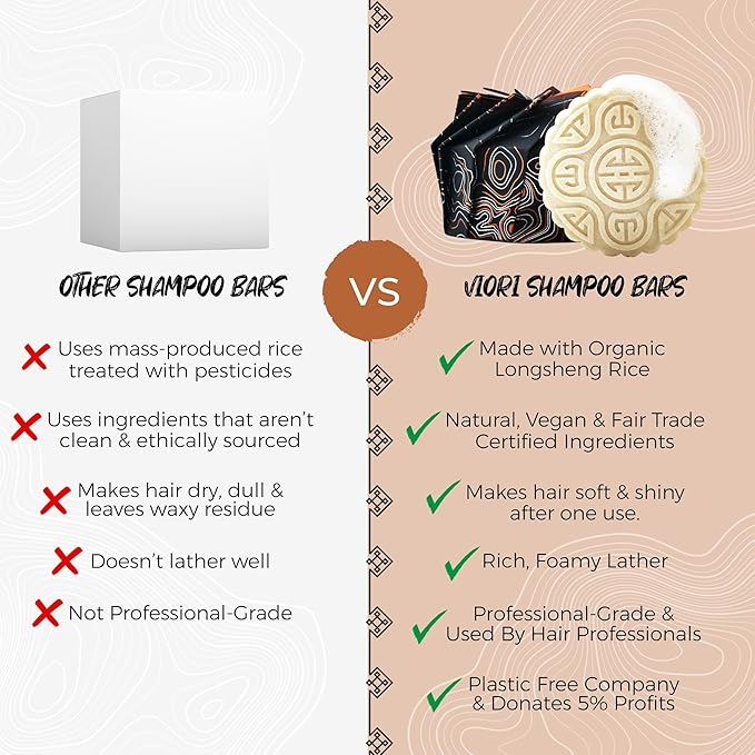 - Natural Benefits of Rice Water Shampoo: Looking for a natural hair growth shampoo for women and men? Our rice water shampoo and conditioner bars are made from nourishing ingredients like rice water, vitamins and natural oils that make incredibly effective hair growth products