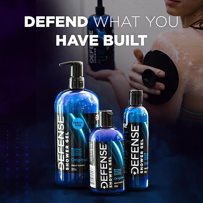 - CONVENIENT FAMILY SIZE | 32oz bottle of Defense Shower Gel is ideal for an active, healthy family. The dispensing pump prevents messes and spills while keeping water and moisture out. Don’t let skin irritations keep your family on the sidelines.