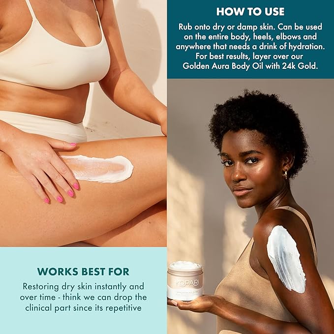 - LASTING HYDRATION: Experience 72 hours of hydration with our Ultra Restore Body Butter. This magic moisturizer doubles your skin’s moisture right away, leaving it soft, smooth, and glowing. No need for touch-ups—just long-lasting moisture that stays with you all day and night.