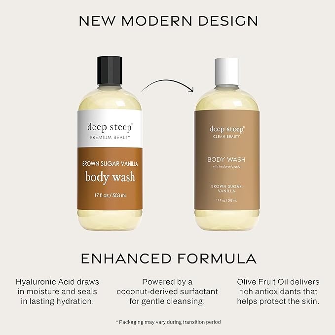 Deep Steep Body Wash, Brown Sugar Vanilla, 17 oz – Hydrating Shower Gel with Hyaluronic Acid, Shea Butter, Aloe Vera & Argan Oil – Vegan, Clean Beauty, Clean & Refreshed Skin
