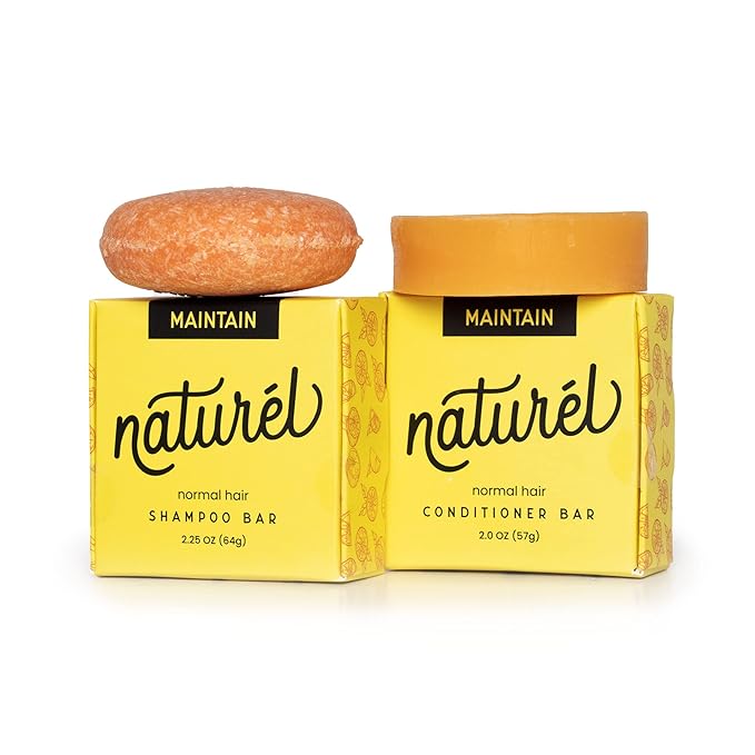 Naturel Maintain Shampoo and Conditioner Bar Set with Grapefruit Oil and Castor Oil for Hair Growth and Shine, Vegan and Cruelty Free, Zero Waste, Made in USA