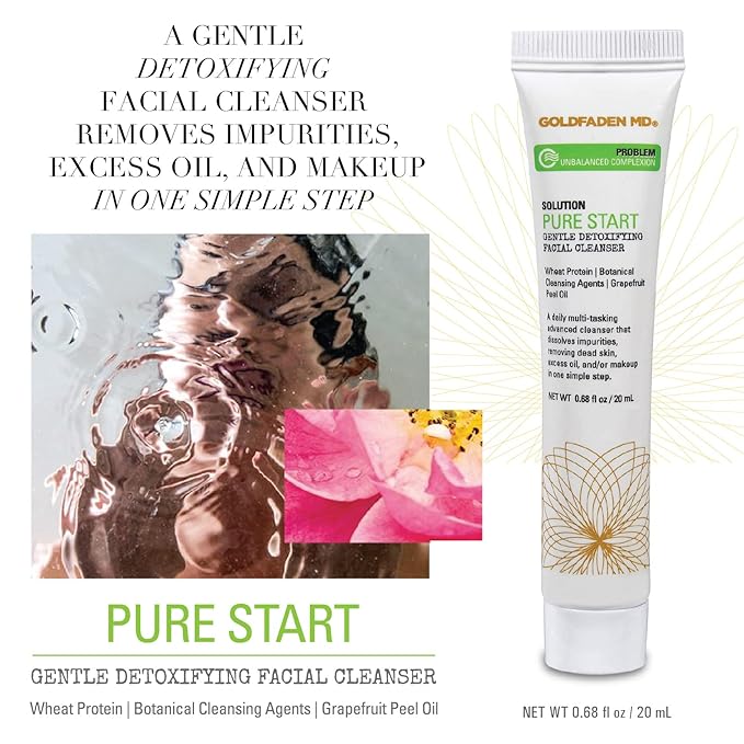 GOLDFADEN MD Pure Start Gentle Detoxifying Natural Facial Cleanser Grapefruit Peel Oil, Organic Red Tea Extract, Seaweed Extract, Rose Hip Seed Oil TRIAL .67 Fl Oz