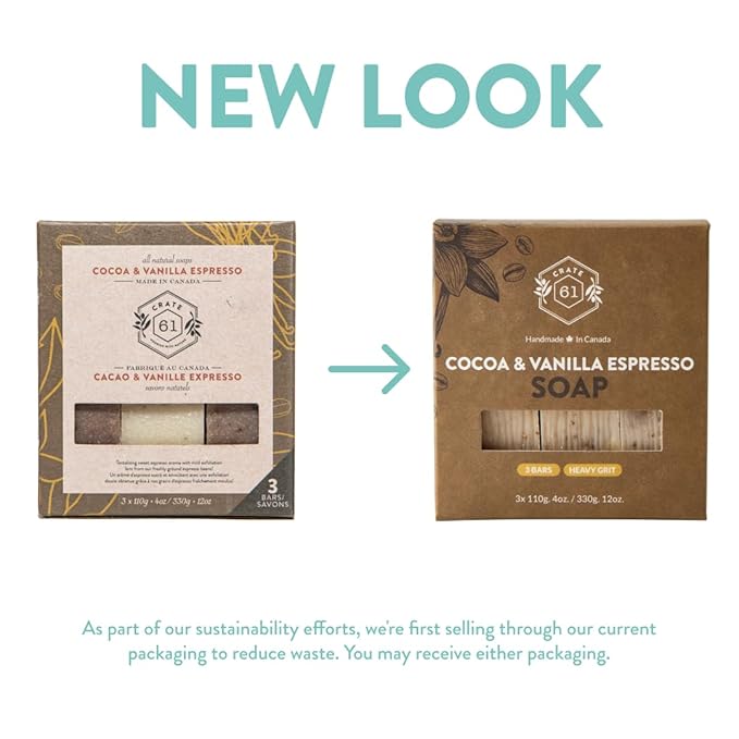Crate 61, Handmade in Canada, Plant Based Cold Process Natural Bar Soap For Face And Body, With Premium Essential Oils, For Men And Women 3 Pack (Cocoa Vanilla Espresso)