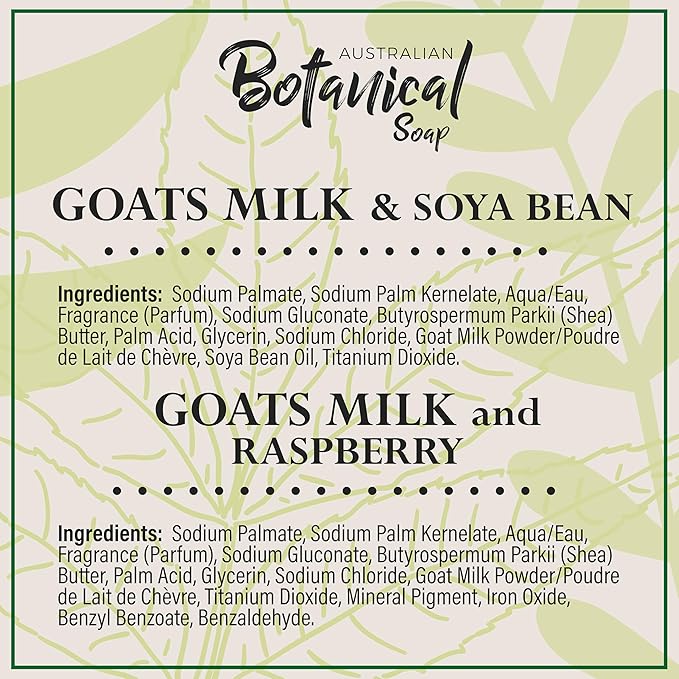 Australian Botanical Soap, Classic Goat Milk and Goat's Milk with Raspberry, 6.6 OZ, Triple Milled Bars made with a Natural Soap Base and Enriched with Organic Shea Butter, Pack of 8