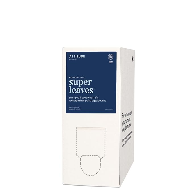 ATTITUDE 2-in-1 Body Wash and Hair Shampoo, EWG Verified Shower Gel, Dermatologically Tested, Made with Naturally Derived Ingredients, Vegan Personal Care, Sage and Rosemary, 67.6 Fl Oz