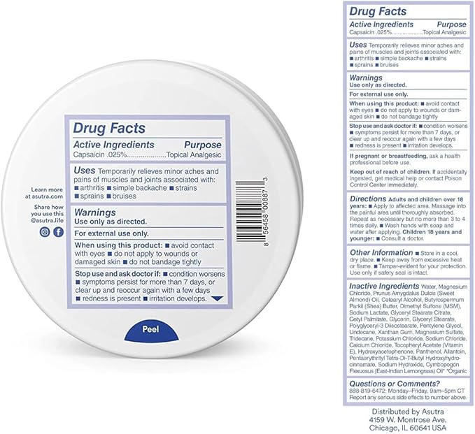 - WARMING RELIEF: This body butter features capsaicin (derived from chili peppers) that provides gentle warming relief which temporarily relieves minor aches and pains.