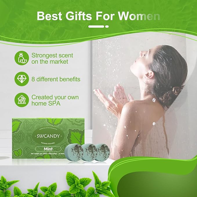 - Beautiful package: SWCANDY shower bombs is the best gifts for your Mom. Exquisite package for you to send as a gifts without repackage it. It's a great Mother's Day gifts , Christmas gifts, Valentine's Day gifts, father day gifts. Best gifts ever to bring joy and relaxation to others, SWCANDY shower steamers mint scent is your right choice. The best choice for woman who have everything.