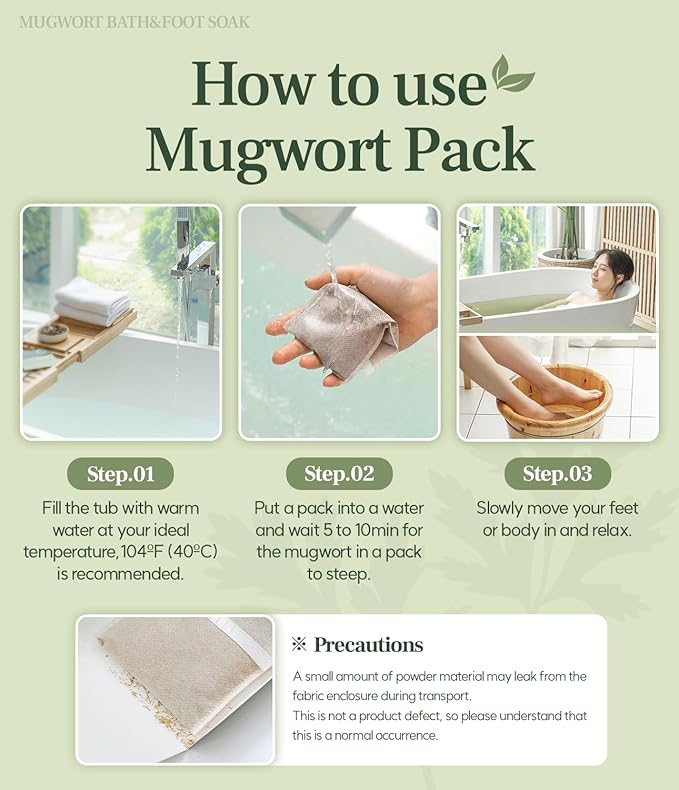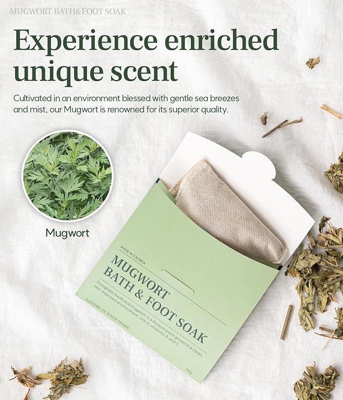 Monage Korean Organic Mugwort Bath and Foot Soak (10 Pack) Natural Home Spa Therapy with Traditional Korean Healing Properties and Relaxation Benefits, Skin Soothing, Muscle Relief, Korean Skin Care