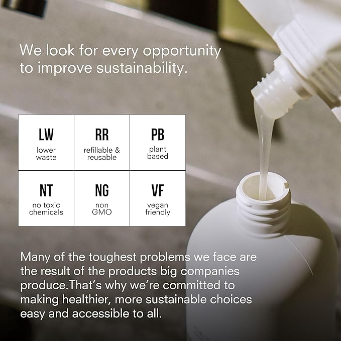- Less Waste - Designed with sustainability in mind, our 34 ounce body wash is ideal for refilling our 12 ounce bottle or one of your own.
