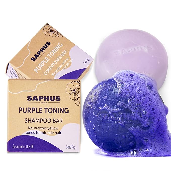 - neutralize & add shine: purple shampoo bar infused with violet pigments to counteract yellow and orange tones, revealing a brighter, healthier haircolor, and provide a natural-looking blondes.
