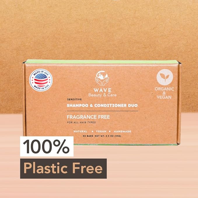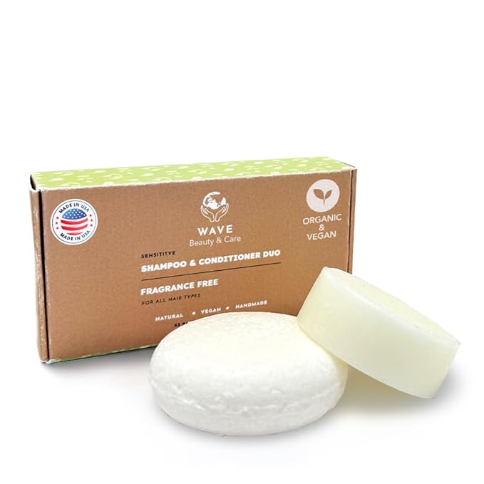 Wave Unscented Shampoo & Conditioner Bar Set - Sulfate Free Natural & Organic Moisturizing Vegan Shampoo and Conditioner Bars for Women & Men - Long-Lasting (80-120 Uses)