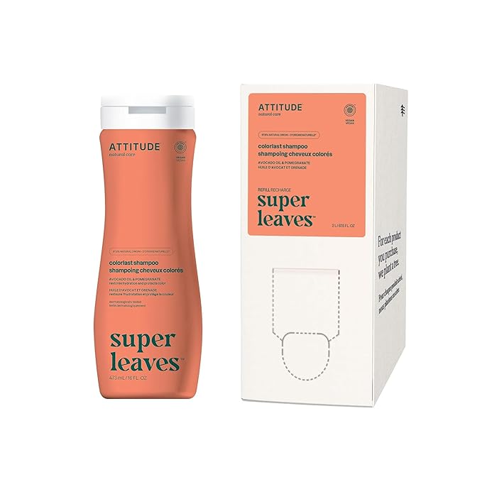 Bundle of ATTITUDE Colorlast Hair Shampoo, EWG Verified, Dermatologically Tested, Plant- and Mineral-Based, Vegan Beauty Products, Avocado Oil and Pomegranate, 16 Fl Oz + Bulk Refill, 67.62 Fl Oz