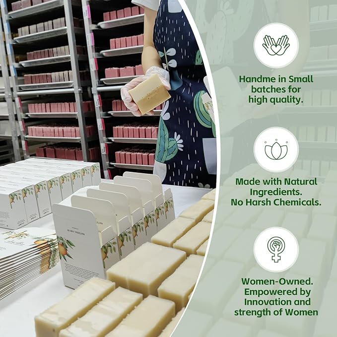 - Made with Organic Natural Ingredients: Handmade in small batches ensures the high quality of each product. Enriched with natural ingredients such as shea butter, olive oil to provide extra moisturizing for skin. No GMOs. No parabens. No SLS. No harsh chemicals. Always no animal test