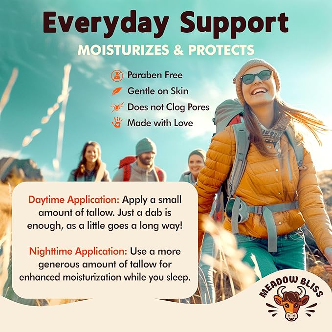 - Ancestral Skincare - Meadow Bliss is crafted with 100% Grass-fed & Finished US beef tallow (Hormone-Free, Antibiotic-Free) organic shea butter, & organic jojoba oil. Rich in vitamins A, D, E, K - deeply nourishes, hydrates, & mimics your natural oils