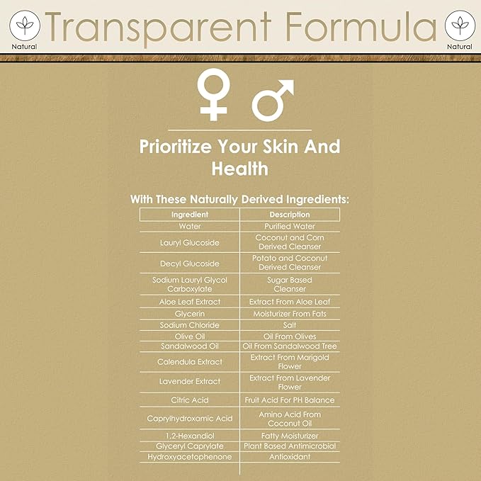 - Nourishing Cleanse: Olive oil, aloe vera extract, and lavender extract leave your skin feeling soft, smooth, and refreshed.