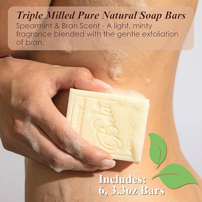 BELA Spearmint and Bran Soap 3.3 OZ (Pack of 6)- French Triple Milled Bar Soap with Organic Shea Butter, Hand, Face and Body Wash Bar, Made in Australia