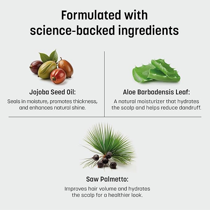 - ORGANIC & NATURAL INGREDIENTS FOR HEALTHY HAIR- Formulated with 96% naturally derived ingredients, including jojoba oil, aloe vera, and saw palmetto, to nourish and strengthen hair without harsh chemicals.