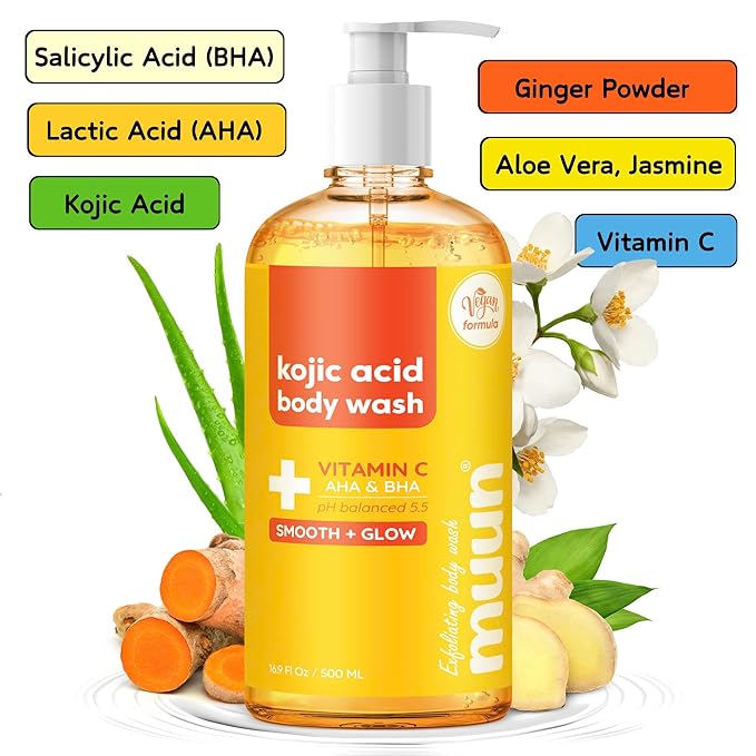Muun Body Wash with AHA&BHA Exfoliating, 16.9 Fl Oz/500ml Prevent Ingrown Hair Even Skin Tone Underarm Bikini, Smoothe & Soften Body Wash