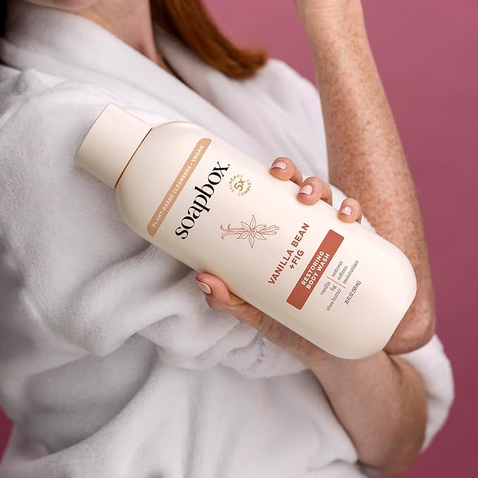 Soapbox Body Wash, Vanilla Bean & Fig Liquid Body Wash, Moisturizing Soap with Shea Butter, Vegan Duo Pack of 2 Soap Bottles, 20oz Each