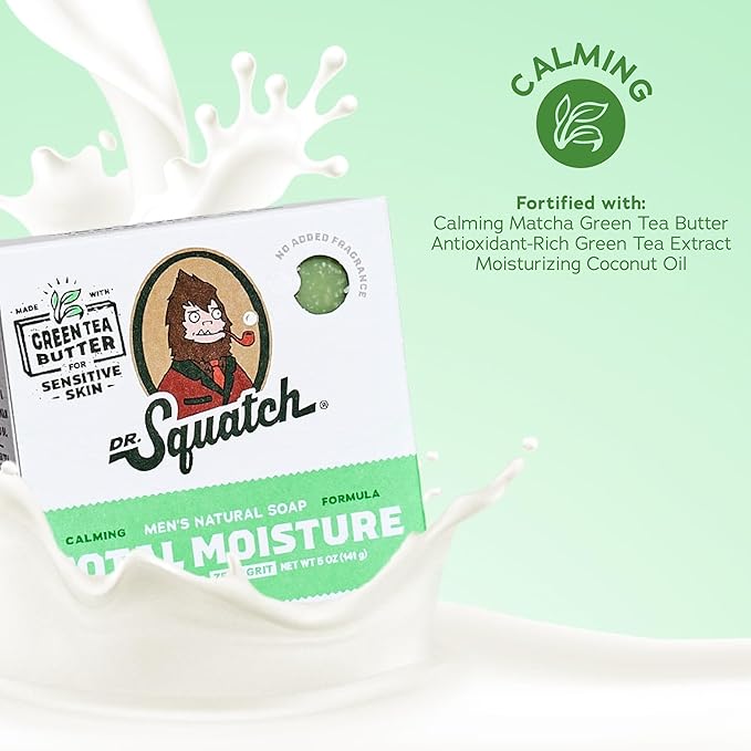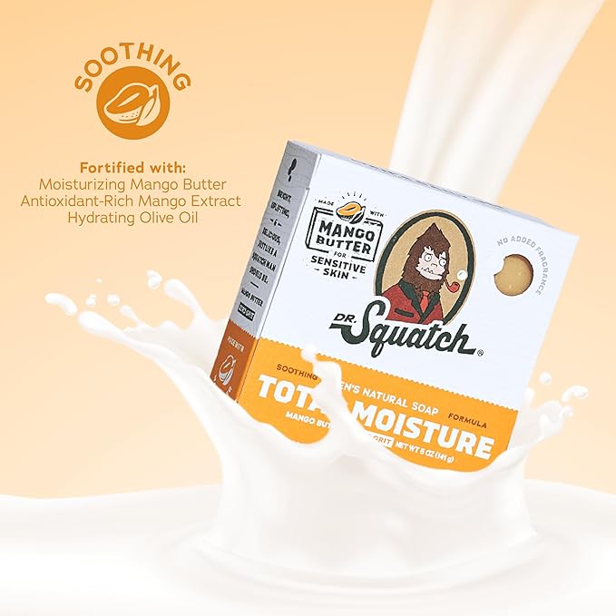 Dr. Squatch NEW Total Moisture Bar Soap for Men - No Added Fragrance Formulated for Sensitive Skin - Shea Butter, Mango Butter & Green Tea Butter (5 oz, 3-pack)
