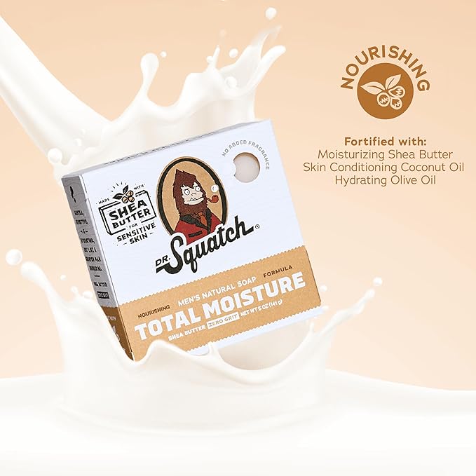 Dr. Squatch NEW Total Moisture Bar Soap for Men - No Added Fragrance Formulated for Sensitive Skin - Shea Butter (5 oz, 3-pack)