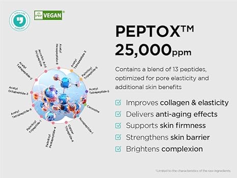 - Peptide and Hyaluronic Acid Blend: Features 25,000 ppm of PEPTOX peptide complex and hyaluronic acid; helps improve skin elasticity and hydration for a more supple complexion